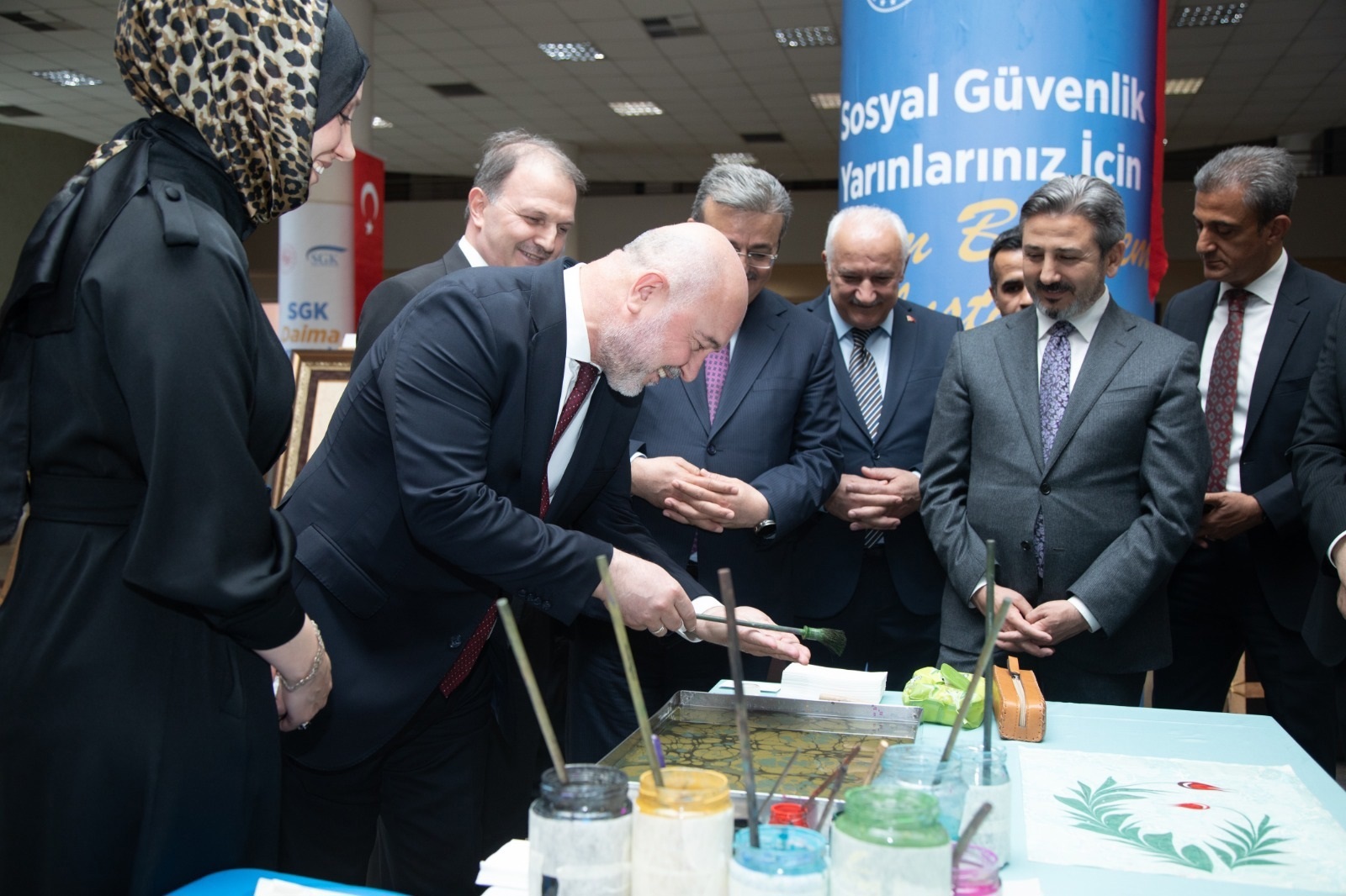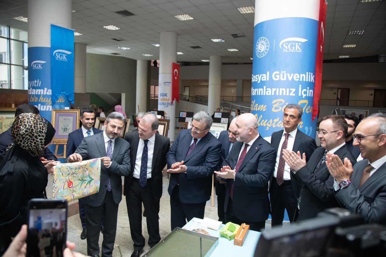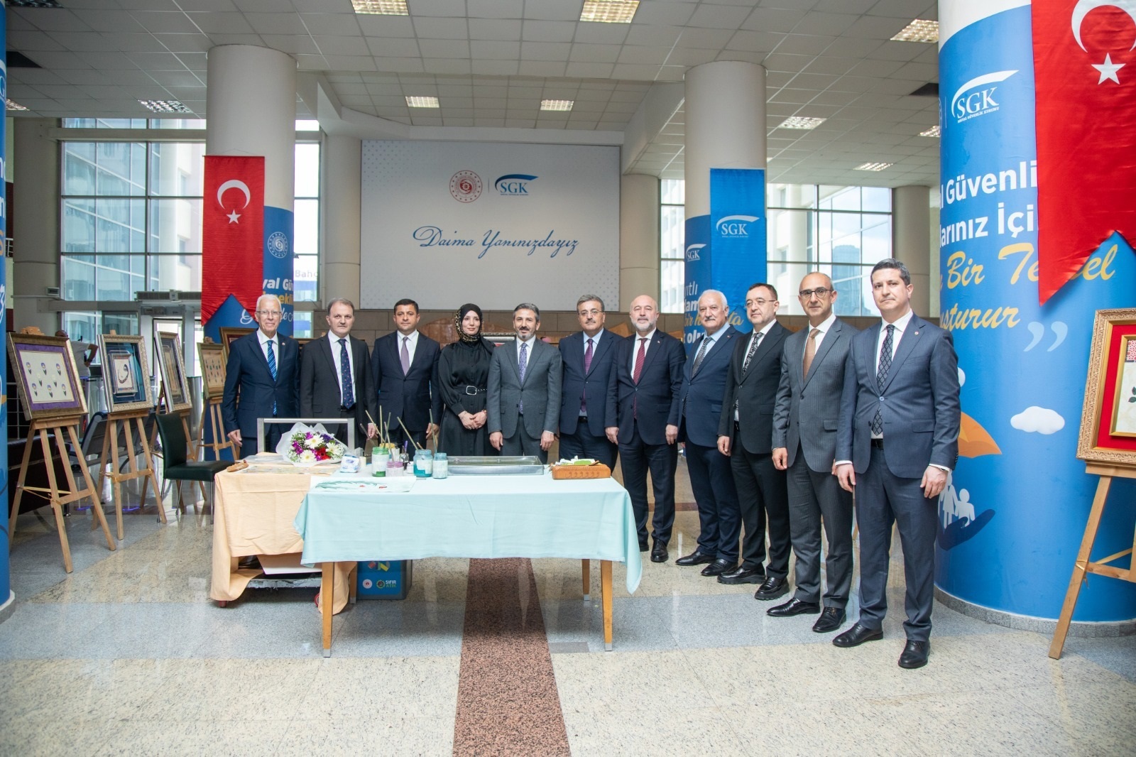 Sosyal Güvenlik Kurumunda (SGK) Sosyal Güvenlik Haftası kapsamında ebru, tezhip, hat ve barok tarzındaki eserleri ile “Türk İslam Sanatları” konulu ve SGK Kreş ve Gündüz Bakımevi çocuklarının hazırladığı “Çocukların Gözünden Sosyal Güvenlik” temalı resim sergileri açıldı.