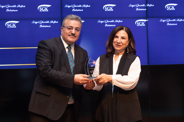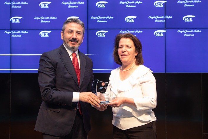Etkinliğin sonunda Bakan Yardımcıları Ahmet Aydın ve Faruk Özçelik, 45 yılı aşkın süredir SGK’de fiilen görev yapan Lütfiye Arslan Karaçam ve Şehriban Onar’a Sosyal Güvenlik Haftası vesilesiyle plaket vererek, Kuruma verdikleri hizmetler için teşekkür etti.